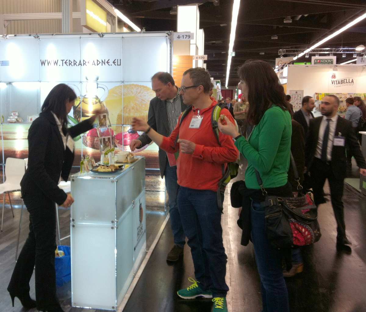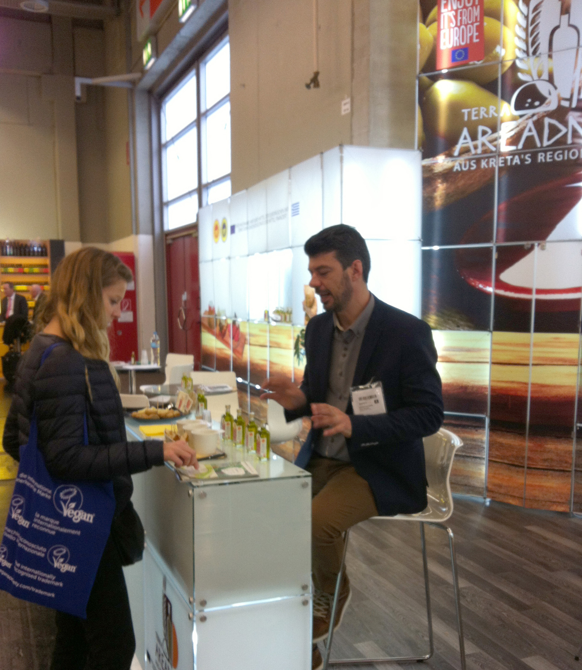 Highly successful was the first trip of PDO-PGI products from Crete to the German market. The Legal persons Union consisting of: Kriton Artos S.A., BOTZAKIS A.E.V.V.T. & X.E. AND MASAOUTIS FAMILY Ltd., with Lead Partner Kriton Artos S.A., participated under the title “Terra Areadne” to the German organic products leading exhibition, Biofach 2016, held 10-13 February in Nuremberg.